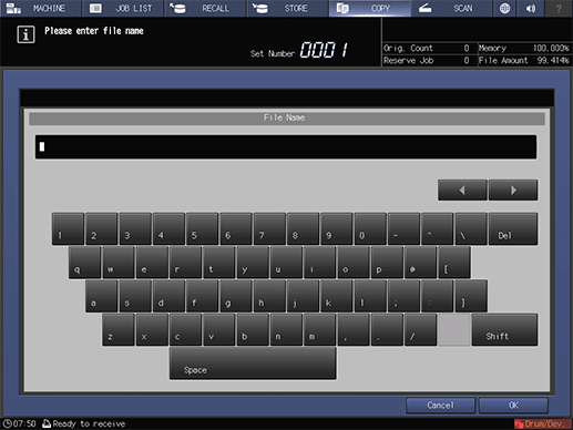 supplementary explanationIt is possible to skip entering a file name. If you do not specify a file name, a 4-digit number (serially from 0001) is assigned automatically.