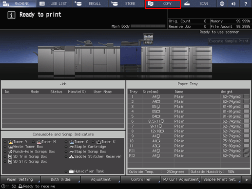 Press the COPY tab on the touch panel of the main body.