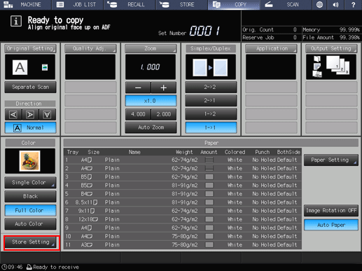 supplementary explanationWith HDD Store or Hold selected, the message Press [Start] to scan originals is displayed in the message area of the COPY screen.