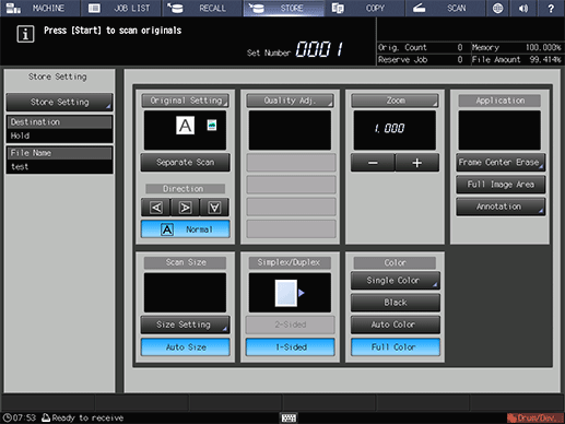 • supplementary explanationTo save a scan job on the HDD, select HDD Store.