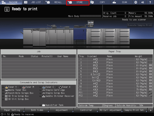 2. Press the STORE tab on the touch panel of the main body.