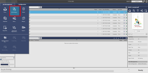 supplementary explanationIn AccurioPro Print Manager, you can only edit print jobs (Job Type is Print). To edit a copy job or scan job (Job Type is Copy), use the touch panel of the main body.