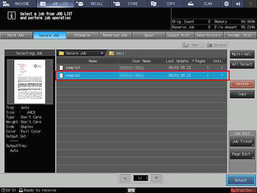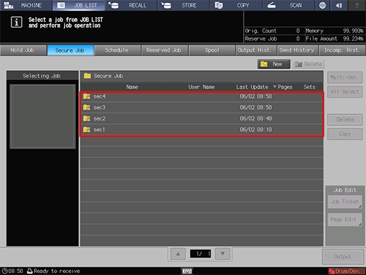 supplementary explanationSecure jobs are always deleted after they are printed. The edited print job is not saved.