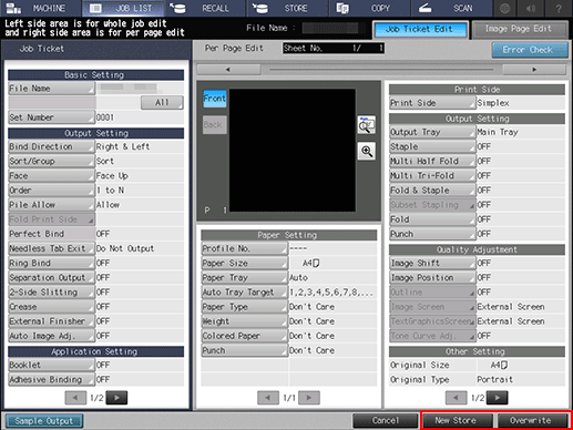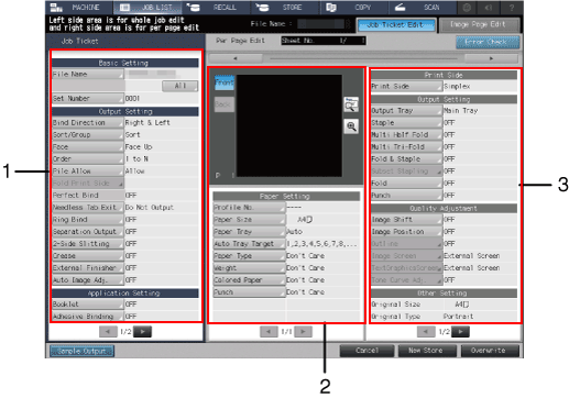 Output Setting | Set Bind DirectionSort/GroupFaceOrderFold Print SideNeedless Tab Exit, etc. | |