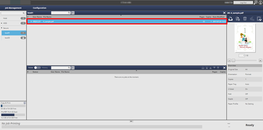 supplementary explanationIn AccurioPro Print Manager, you can only edit print jobs. To edit a copy job or scan job, use the touch panel of the main body.