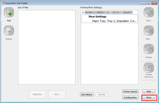 You can start printing simply by copying a file (e.g., PDF/TIFF/PS) to the hot folder of AccurioPro Hot Folder.