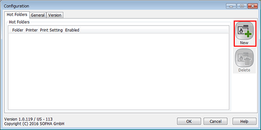 supplementary explanationIf there are the configured hot folders, they are displayed in Hot Folders.