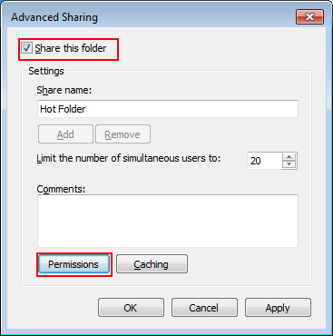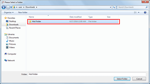 By setting a hot folder as a share folder, you can use it from a computer on the network.