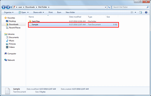 If necessary, access the hot folder shared with another computer, and copy it to any location.
