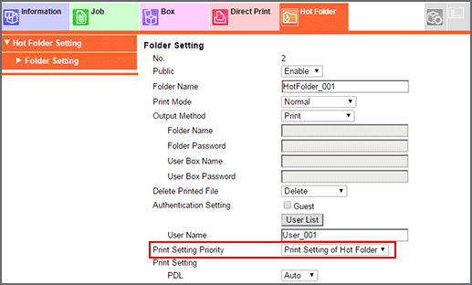 In Print Setting Priority, select Print Setting of Hot Folder.