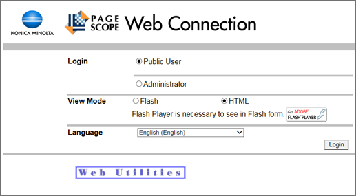 supplementary explanationThis returns to the login screen of PageScope Web Connection.