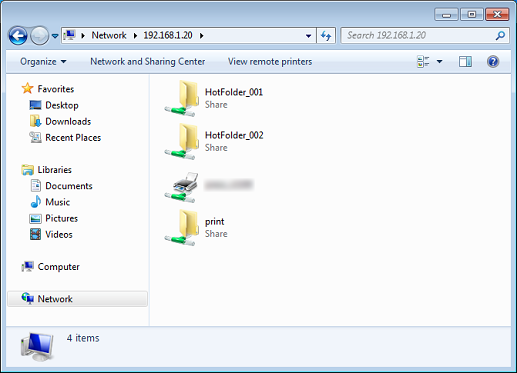 When you access a Hot Folder after setting the folder or changing the settings, the error windows of the operation system may be displayed. Access a Hot Folder about 10 seconds after setting the folder or changing the settings.