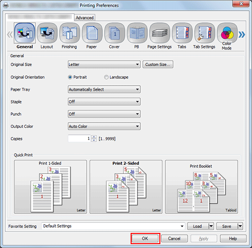 Favorite Setting and General are the functions supplied with the PS Plug-in driver. These functions are not available for other drivers.