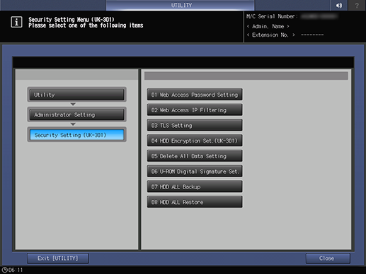 • Utility - Administrator Setting - Security Setting (UK-301)