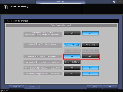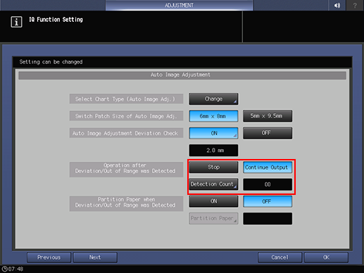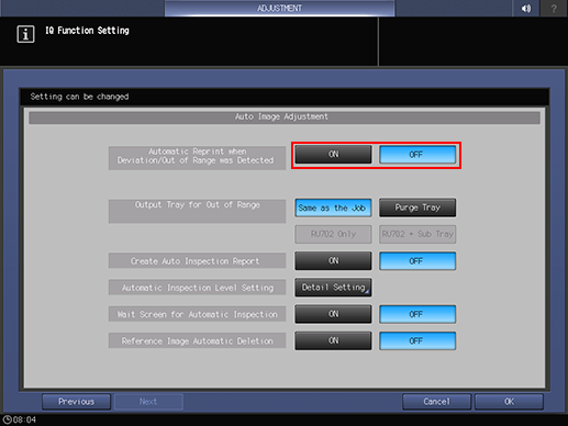 4. Select OFF in Automatic Reprint when Deviation/Out of Range was Detected.