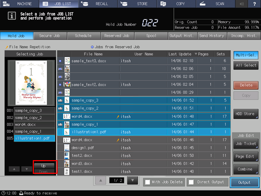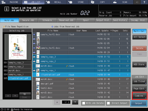 supplementary explanationIf a desired job to combine is not found on the list, press downup to display the job.