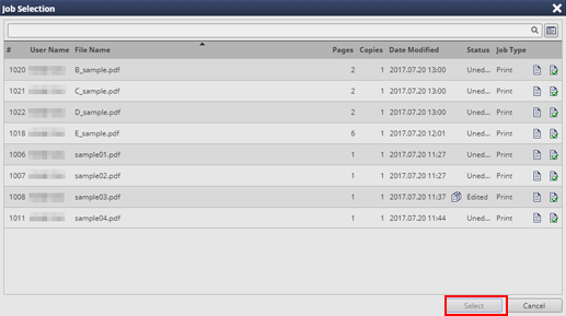 supplementary explanationIf the PDL of the job that is editing the page is TIFF or JPEG, the jobs of TIFF or JPEG are listed.