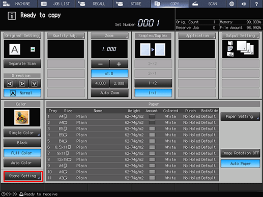 supplementary explanationWhen HDD Store + Print is selected, Ready to copy is displayed in the message display area of the COPY screen.