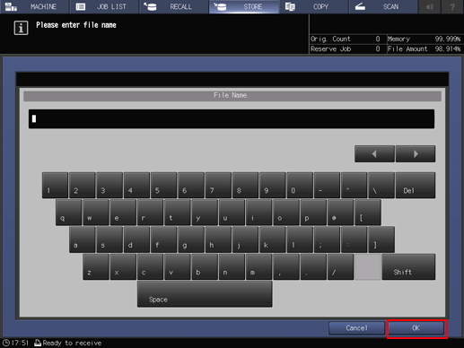 supplementary explanationWith HDD Store selected, the message Press [Start] to scan originals is displayed in the message area of the COPY screen.