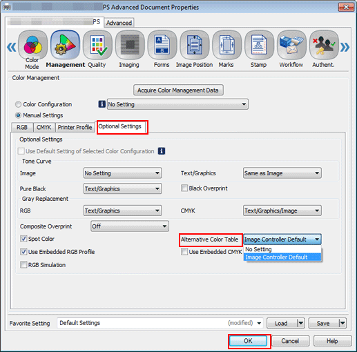 Applying alternative colors for printing using the printer driver (Changing RGB colors to CMYK colors)
