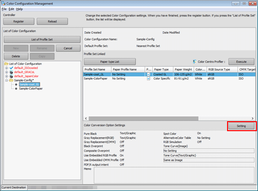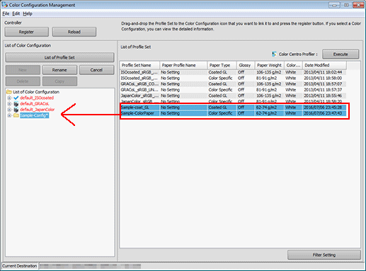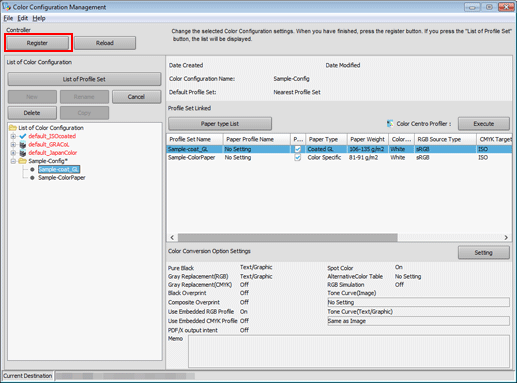 You can create a color configuration with Color Centro and register existing profile sets to activate the color configuration.