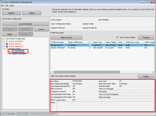 •The above two profile sets are registered in a color configuration that is created with the name Sample_Config.