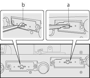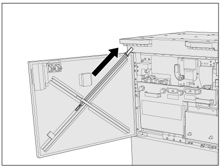 supplementary explanationWhen returning the Cleaning tool to its original position, store it with the pad at the edge of the Cleaning tool facing forward as shown below. If the Cleaning tool is inserted with the pad facing toward the door side, the pad may get dirty or damaged.