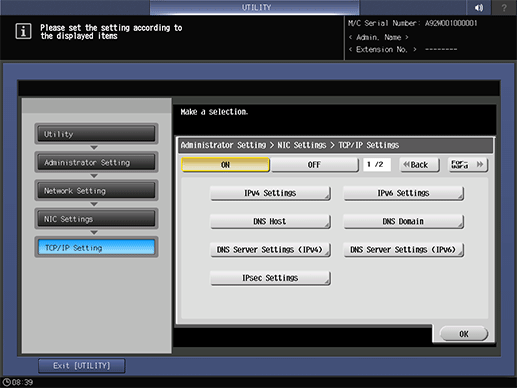 Press Network Setting on the Administrator Setting Menu screen, and then press NIC Settings.