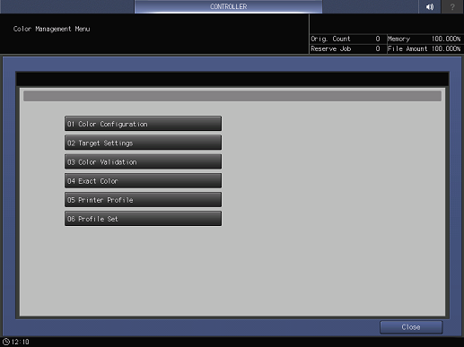 This screen is displayed if you select Color Management on the Controller Machine Setting Menu screen. For details about how to display the Controller Machine Setting Menu screen, refer to Overview of Controller.