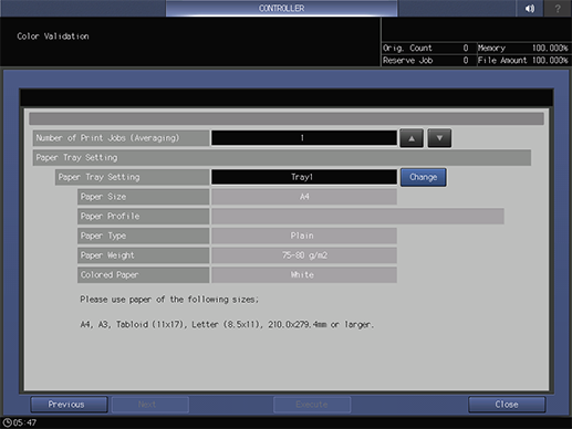 Number of Print Jobs (Averaging) | Specify the number of chart output jobs. |