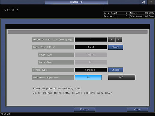 For details, refer to Executing Exact Color: Touch Panel or Executing G7 Calibration: Touch Panel.