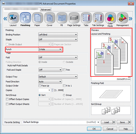 supplementary explanationSetting Punch allows you to make punch holes (2 holes, 3 holes, 4 holes, or Swedish 4 holes). Mount Punch Kit PK-522 to Finisher FS-532.