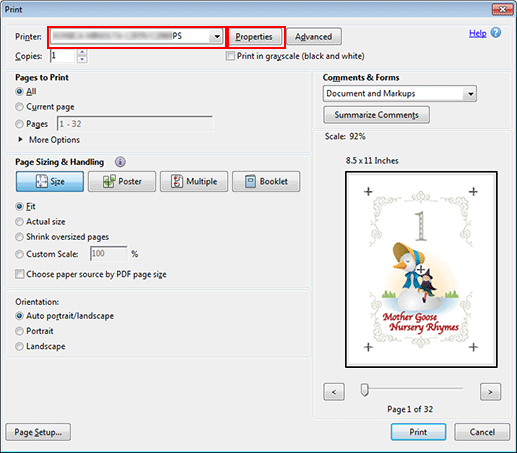 Select the printer to use for printing and click Properties.
