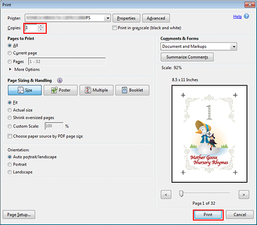 On the Print screen, enter the Copies and click Print.