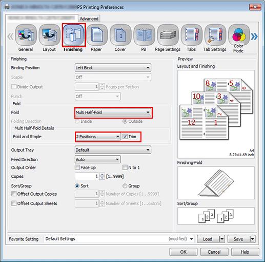 Click the Finishing tab, and then set Fold and Multi Half-Fold Details.