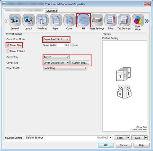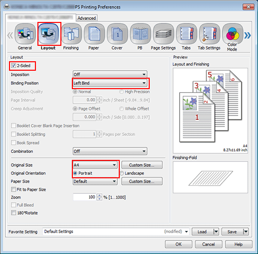 When setting in the printer driver, make sure that there are no previous settings left in each item in the tabs Layout, Finishing, Cover, etc.