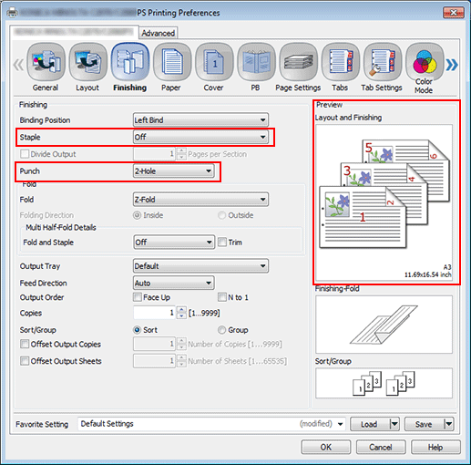 The following items can be set in the Finishing tab.