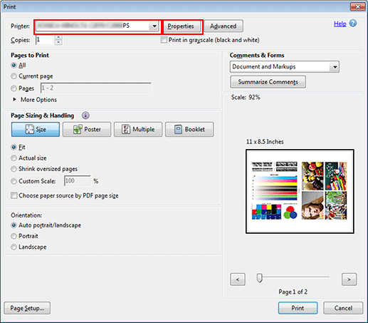 Select the printer to use for printing and click Properties.