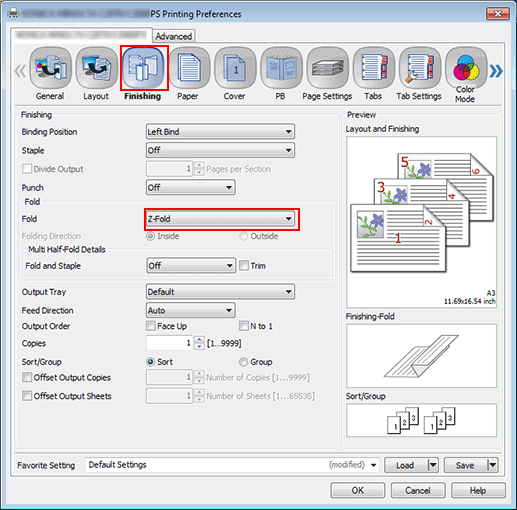 Click the Finishing tab, and then set Fold.