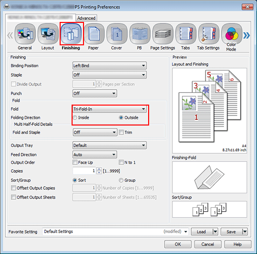 Click the Finishing tab, and then set Fold and Folding Direction.