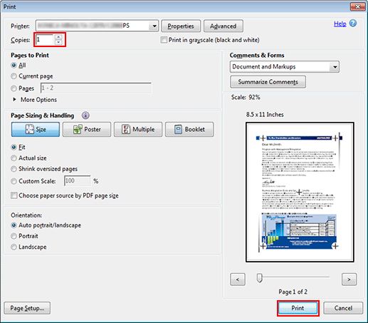 Printing starts. When the printing is completed, go to Checking the finishing, and check the finishing of the printed document.