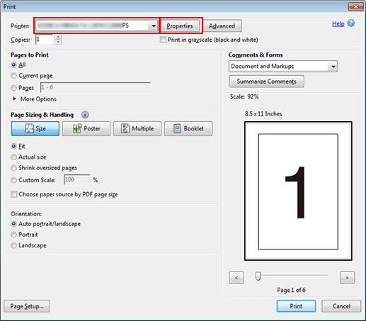 1. Enter Copies on the Print screen, then select Choose paper source by PDF page size, and then click Print.