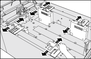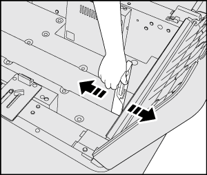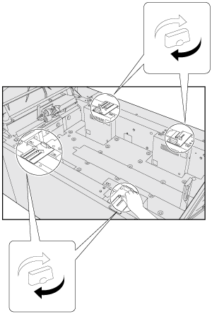supplementary explanationTurn the four side guide fixing knobs of the side guide plate (left) and the two side guide fixing knobs of the side guide plate (right) counterclockwise to loosen them.