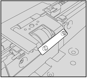 If a paper feeding failure occurs due to the paper type, paper size, or paper weight, you may improve the paper feedability by attaching the weight plates supplied with the machine to the pick-up roller unit as shown below. Change the number of weight plates to make adjustments. When loading banner paper of up to 539 mm / 21.22" in length into Large Capacity Unit LU-202XLm, attach two weight plates in advance, then change the number of weight plates to make adjustments.