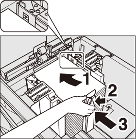 Be sure that the rear guide plate is securely aligned to the paper. If any gap is left between the rear guide plate and paper, the machine cannot detect the correct paper size, and paper jams or machine trouble may be caused.