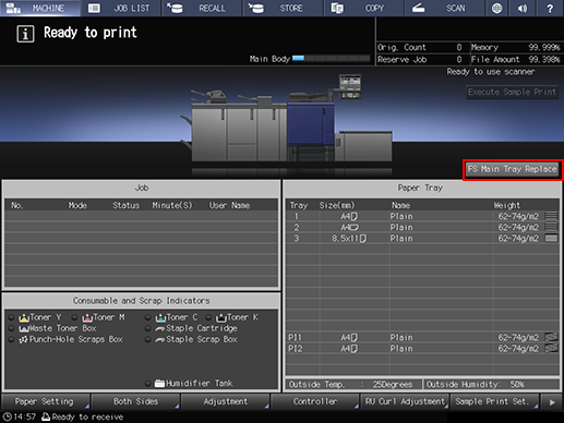 Mount Banner Tray Unit MK-740 or Output tray reinforcing unit for banner MK-740m (output extension tray) in Finisher FS-532 or Output Tray OT-510.
