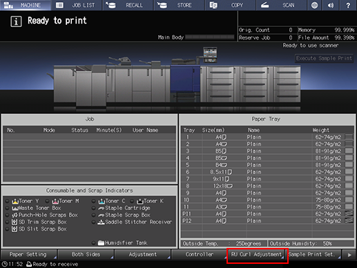 supplementary explanationFor the mechanical curl adjustment, you can change and apply the value while outputting a print job.