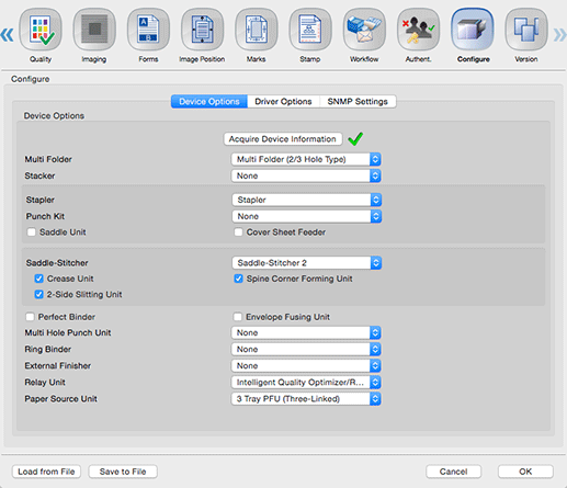 is displayed at the right of [Acquire Device Information]. If it is not displayed, click [Acquire Device Information] to acquire device option information.