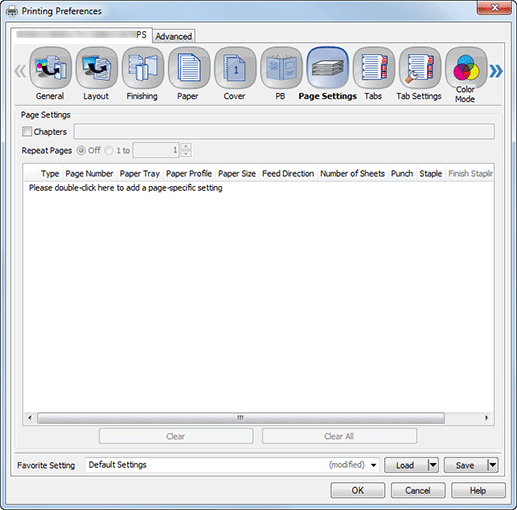 Page Settings | Type | Set a print type for a page specified in Page Number. Select Same as Body to apply the setting for the original. |