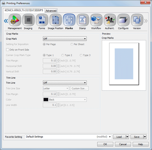 Crop Mark | Off, Corner, Center, Corner/Center | Set this to print a crop mark on paper. |